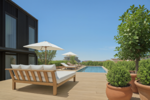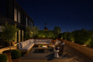 屋根が半開きになり、強烈な日差しと濃い影のコントラストを作っている。