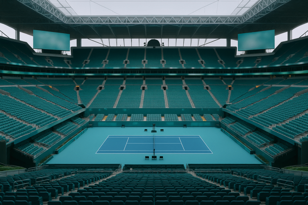 雨音のテンポ マイアミ特有の、湿った南風がスタジアムを横切った。 遠くで雷鳴が鳴り、空の色がにわかに灰色へと変わっていく。 観客席のざわめきが波のように広がる中、主審が中断を告げた。 女子ダブルスの試合は第2セット途中でストップ。 屋根のない... -